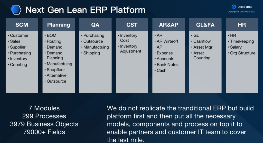 ng28注册平台入口把这样的逻辑同样应用到了工业领域。比如在纷繁复杂的泛ERP场景中,ng28注册平台入口把ERP场景中的核心模型内置在元数据模型平台上,并不是复制一个传统ERP,而是把核心的模型、组件、流程开放性的构建完善,支持ng28注册平台入口的伙伴和客户通过一个瘦身的Lean ERP Platform进行扩展开发的逻辑构建最后一公里的业务实现。
